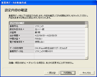 弥生会計 14 スタンダードを起動後、まずは「導入作業」をおこないます。導入作業では事業所データ(会社情報)や消費税設定、勘定科目や開始残高などを入力します。全ての項目は画面に表示される質問に答えていくだけで設定できるので、PCの操作や会計の業務に慣れていない人でも簡単に作業が行えます。設定に迷った場合には、導入作業の各ステップを丁寧な動画で説明してくれる同梱ソフト「導入アドバイザー」を利用しましょう。
